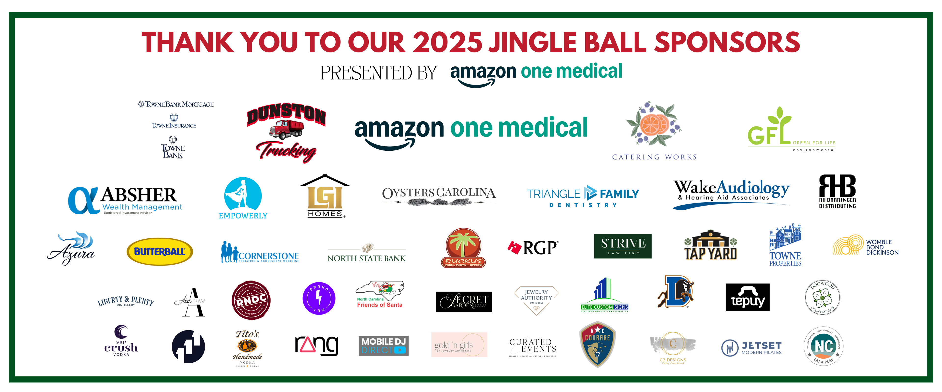 The Capital City Clauses and The Jingle Ball would not be possible without the generosity of our sponsors. It's through their kind donations that we are able to put on these events every year, and collect thousands of toys for Wake County children.